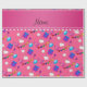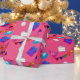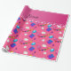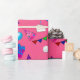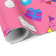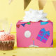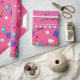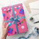 Birthday gift ideas for women and girls. Modern and trendy Custom name birthday party pattern with blue birthday balloons, pink birthday hats, blue pink presents, white cake with candle, vanilla cake pops, and rainbow bunting background with heart stripe personalised with just add your name gifts or monogram gifts or your initials for a unique gift. Ideal for birthday parties.