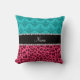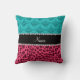 Pink leopard animal print pattern background and turquoise damask black diamonds stripe (faux diamonds, not real) with hearts and dots personalised with your name gifts or monogram gifts or your initials. Ideal for groom and groom weddings, wedding showers, engagement showers, engagement party, anniversary, save the date, bachelorette party, birthdays, and much more featuring an elegant and traditional fancy lettering