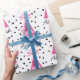 Pink party hat wrapping paper customised name to wrap all you birthday gifts in. Being bold pink, black, and white graphic confetti and hat with words will make it sure to get noticed.