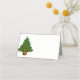 This folded name place card is shown in basic white with a festive holiday Christmas tree print.