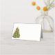 This folded name place card is shown in basic white with a festive holiday Christmas tree graphic print.