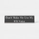 A desk name plate for those in Human Resources (HR) who feel as if they're sometimes dealing with a group of children rather than professional adults. Don't make me use my HR voice!