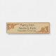 Bracket at right angle, with three leaves of varying sizes, sits in upper left and lower right corners. Personalise with Business Name, Personal Name, and Title. Image is dark red/brown on tan background.