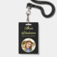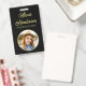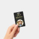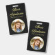 Features gold coloured text for your name & profession with personal photo with gold coloured border on a black background on both sides.