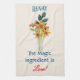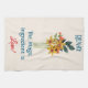 Paper quilled flower bouquet with name and quote are featured on this stylish kitchen towel. The background is a linen colour. Easily change the name and text to make it yours using the Template provided. This large 16"x24" textured towel is 80% durable woven polyester/ 20% polyamide blend microfiber. Great for drying and machine washable. Made to last a lifetime. See "About This Product" at side for more information. High ratings. The actual paper quilled piece is approximately 5" x 3.5". Even with the significant enlargement on this towel the image details are amazingly clear.