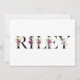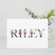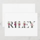 The name Riley written in beautiful letters.Each letter is decorated with a bouquet of flowers.Ornamental font.Colourful flowers for a woman.