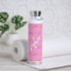 Modern watercolor pastel rainbow pattern bright pink water bottle personalised with your name in trendy handwritten signature script calligraphy. ++++++++ Can be a cute keepsake gift for a birthday, Sweet 16, wedding, or bridal shower.