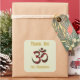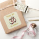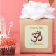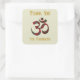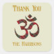 Square 3" Om Symbol with Royal Stewart Tartan plaid pattern featuring 'Thank You' text and name in a goldenrod elegant font on a pearl colour background. Change or remove name & text using the Template provided. Excellent quality and printing. See "About This Product" at side for more information. HIGH reviews.