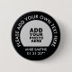 A simple black button to personalise with your own photo ( or your pet, logo or any other image), name, text and special date