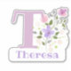 Personalise any item with a Name and Initial with Floral Design Cut-Out Sticker. Example name is Theresa.