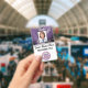 Stand out professionally with this customisable employee ID badge, designed for nurses, doctors, and medical staff. The front features a moody purple and gold marbled alcohol ink design with a photo frame, name and title in elegant script and block fonts, plus space for your business logo. The back includes a QR or barcode template, return address, and matching marble background. Perfect for travelling nurses or healthcare pros with style.