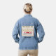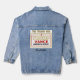 Turn heads wearing this classic jean jacket boasting a unique design featuring my Trump-Vance 2025 banner with 'America First' and 'The Golden Age'. Minimal design with gold and red accents and elegant script name in black. Easily change or remove name using the Template provided. See "About This Product" at side for more information and care.