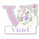 Personalise any item with a Name and Initial with Floral Design Cut-Out Sticker. Example name is Violet.