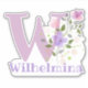 Personalise any item with a Name and Initial with Floral Design Cut-Out Sticker. Example name is Wilhelmina.