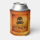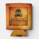 Name your poison! This beverage can cooler design features dark humour - a skull and crossbones set against a distressed gold and orange vintage background with ghoulish words in black. The bottom side also has the same skull image which shows when you drink from the can. Perfect for a Halloween or costume party, it would also make a fun gift or party favour for people who like to live life on the edge.