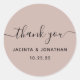 Natural gray-beige and black boho wedding 'thank you' stickers. Stylish handwritten script calligraphy and san serif fonts. Simple 'thank you' classic sticker with boho gray-beige background and black lettering. Easily add your own names and wedding date. Named Beige Black Thank You Classic Round Sticker. Color hex code CDB3AC Gray Beige. See our collection for more great wrapping ideas.