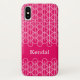 A red pink white oval and line art patterned iphone case. Personalise this item with your own name. Original pattern and design by Sarah Trett for www.mylittleeden.com on zazzle.