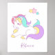 Named Wall Art, Kids unicorn poster, personalised childs picture.