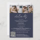 A modern, chic and elegant wedding invitation with script names with a hand written calligraphy in navy blue with a black overlay at the front to add your photo and another 3 photos at the back. A modern all in one wedding invitation with rsvp, details , accommodations and qr code. All the text, names and background colours are customisable. A simple and minimalist invitation.