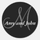 By Elke Clarke©2009. More designs at WhiteWhimsicalWeddings.com and WhiteWhimsicalWeddngs.blogspot.com. The design is simple yet classic and fits with any invitation and wedding theme. THE MONOGRAM GALLERY allows you to customise the names, monogram and colours of this sticker. Just click on the "CUSTOMIZE" button and follow the prompts.