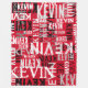 Imagine wrapping yourself in a blanket that not only keeps you warm but also tells your unique story. The distressed names repeated across the vibrant red background create a visually striking and modern aesthetic. The typography design pays homage to retro graphic arts, giving it a timeless and stylish appeal.