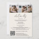 A modern, chic and elegant wedding invitation with arch, script names with a hand written calligraphy in black on ivory beige with an arched photo and another 3 photos at the back. A modern all in one wedding invitation with rsvp, details , accommodations and qr code. All the text, names and background colours are customisable. A simple and minimalist invitation.