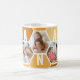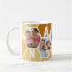 Honeycomb coffee mug, personalised with 5 of your favourite photos and printed with a 4 letter name, such as NANA. The design features a honeycomb photo collage in shades of cream beige honey and burnt orange with a cute little bee. If you want to change the colours, click "customise further" and click each hexagon that you want to change.