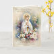 Featuring a beautiful Mother's Day religious card with a lovely Catholic image of the Blessed Virgin Mother Mary with hands folded with vintage flowers and an image of the Miraculous Medal. Text and fonts may be modified.