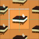 Fabric with a smiling Nanaimo bar character (the background colour is changeable)