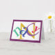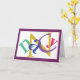 Personalised note card with the name "Nancy" spelled out in colourful letters, playfully arranged. The background is a dark violet. Blank inside.