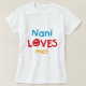 Nani Loves Me T-shirts, cards, stickers, bodysuits bags, and more with colourful red, yellow, and blue text and heart design. These Nani gifts will make nani smile!
