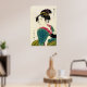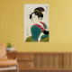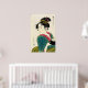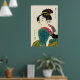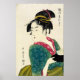 Beautiful woodblock print by Japanese artist Utamaro Kitagawa entitled Naniwaya Okita. It depicts Naniwaya Okita, a teahouse waitress, half-length portrait, turned to the left, carrying a bowl on a tray. Kitagawa Utamaro (喜多川 歌麿, ca. 1753 - October 31, 1806) was a Japanese printmaker and painter, who is considered one of the greatest artists of woodblock prints (ukiyo-e). His name was romanised archaically as Outamaro. He is known especially for his masterfully composed studies of women, known as bijinga. He also produced nature studies, particularly illustrated books of insects. His work reached Europe in the mid-nineteenth century, where it was very popular, enjoying particular acclaim in France. He influenced the European Impressionists, particularly with his use of partial views and his emphasis on light and shade. The reference to the "Japanese influence" among these artists often refers to the work of Utamaro.