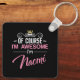 Of Course I'm Awesome I'm Naomi - in mixed white and pink casual and cursive font lettering with scroll embellishments and topped with a golden crown.