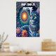 Whimsical Cat Gazing Under a Starry Sky at Midnight. Nap time is anytime.