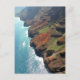Truly one of the most spectacular shorelines in the world. A collapsed sea cave roof can be seen in the foreground. The large boat gives scale to these imposing sea cliffs. The Nā Pali coast is along the northwest side of Kauai, the oldest inhabited Hawaiian island. The Nā Pali coast itself extends southwest starting at Kee Beach extending all the way to Polihale State Park. The pali (cliffs) rise as high as 4,000 feet (1,200 m) above the Pacific Ocean.