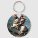 Famous Napoleonic painting by Jacques Louis David entitled, "Napoleon Crossing the Alps" on round keychain.