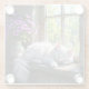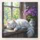 Add a relaxing vibe to room with this pretty colourful coaster featuring a white fluffy cat napping on a rustic window sill next to a pretty vase of vibrant purple flowers. Add your name in the personalise area.