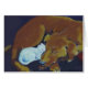 big brown dog sleeping with white kitten: acrilic on canvis (Photoshop altered)