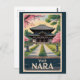 Nara retro vector travel design. Famous for its friendly roaming deer and majestic landmarks like Todai-ji Temple and Kasuga Taisha Shrine, Nara offers a serene glimpse into traditional Japan and its spiritual heritage just a short trip from Kyoto or Osaka.