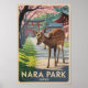 Nara Park Japan Deer Illustration Travel Art Retro Poster