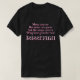 I give wanted to give this a 4 instead of a 5 because these Basic DARK T0shirts run unexpectedly SLIM or Narrow. Which is great if you do not have a potbelly, but I have a paunch. It isn't the shirt's fault that I've got a beer belly. The design and shirt itself is a quality cotton shirt. The color is more of a deep purple, but still a very pretty color. The Basic DARK T-shirts run a bit SLIMMER than the Basic Ts. The neck is a fraction narrower (or seems to be narrower) also. I'm a paunchy middle-aged woman and my neck is 12 inches (31cm) thick and the neckline fell about the same as in the photo of the man, and I had the desire to tug it a bit. So if you're a thick necked man or like loose shirts, be aware these are slimmer shirts. Once I get rid of my lockdown paunch it'll look great. The shirt washed well in cold water with no apparent bleeding. We don't have a dryer, so it hung dry. Did not shrink. Love the colors and the design. The design looks smaller on my shirt than it does on the model on-line. But still, it looks good on the shirt. The printing looks as it does on the model, just the size seems fractionally smaller. Washed garment in cold water, hung dry and design appeared unaffected.