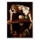 Narcissus – Italian Baroque Painting by Caravaggio. Narcissus or Narkissos (Greek: Νάρκισσος), possibly derived from ναρκη (narke) meaning "sleep, numbness," in Greek mythology was a hunter from the territory of Thespiae in Boeotia who was renowned for his beauty. He was exceptionally proud, in that he disdained those who loved him. As divine punishment he fell in love with his own reflection in a pool, not realising it was merely an image, and he wasted away to death, not being able to leave the beauty of his own reflection. Michelangelo Merisi da Caravaggio (1571 – 1610) was an Italian artist active in Rome, Naples, Malta, and Sicily between 1593 and 1610. His paintings, which combine a realistic observation of the human state, both physical and emotional, with a dramatic use of lighting, had a formative influence on the Baroque school of painting.