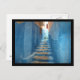 Cool perspective and angle. An old world narrow staircase in Morocco. The walls and stairway are painted a lovely shade of vivid blue giving this passageway an exotic flair.