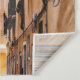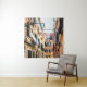 Painting of narrow alley with laundry drying on the wire in the yard between high walls, Venice, Italy. American flag. Narrow street with colorful buildings in Venice and clothes dry on a rope