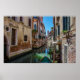 Narrow canal with old colorful houses in Venice, Italy. Traditional gondola in Venetian water canal. Narrow canal street with colorful buildings and boats in Venice.