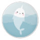 Door knob for kids featuring a cartoon illustration of a little happy narwhal in the sea among blue waves. Great for a little boy's or girl's nursery / kid's room. Ideal for a whale or sea / ocean / under the sea themed room.