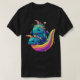 I give wanted to give this a 4 instead of a 5 because these Basic DARK T0shirts run unexpectedly SLIM or Narrow. Which is great if you do not have a potbelly, but I have a paunch. It isn't the shirt's fault that I've got a beer belly. The design and shirt itself is a quality cotton shirt. The color is more of a deep purple, but still a very pretty color. The Basic DARK T-shirts run a bit SLIMMER than the Basic Ts. The neck is a fraction narrower (or seems to be narrower) also. I'm a paunchy middle-aged woman and my neck is 12 inches (31cm) thick and the neckline fell about the same as in the photo of the man, and I had the desire to tug it a bit. So if you're a thick necked man or like loose shirts, be aware these are slimmer shirts. Once I get rid of my lockdown paunch it'll look great. The shirt washed well in cold water with no apparent bleeding. We don't have a dryer, so it hung dry. Did not shrink. Love the colors and the design. The design looks smaller on my shirt than it does on the model on-line. But still, it looks good on the shirt. The printing looks as it does on the model, just the size seems fractionally smaller. Washed garment in cold water, hung dry and design appeared unaffected.