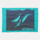 Features three narwhals, Monodon monoceros, swimming under the Arctic ice. The narwhal is related to the Beluga whale and lives in the Arctic year-round. They are found primarily in the waters of Greenland and Canada rarely south of 65°N latitude. Males weigh up to 1,600 kilograms (3,500 lb), females weigh around 1,000 kilograms (2,200 lb). The largest narwhal ever found weighed 3,500 pounds. They are shaped like a beluga and have about four inches of insulating fat. Narwhals normally congregate in groups of about five to ten individuals. In the summer, several groups come together forming larger aggregations. Narwhal is derived from the Old Norse word nár, meaning “corpse”, referring to the animal’s greyish, mottled pigmentation, like that of a drowned sailor. Narwhal are darkest when young becoming whiter with age. The most conspicuous characteristic of the male narwhal is its single 2–3 metre (7–10 ft) long twisted tusk. It is an incisor tooth that projects from the left side of the upper jaw and forms a left-handed helix. The narwhal’s scientific name, Monodon monoceros, is derived from “one-tooth one-horn.” The tusk can be up to 3 metres (9.8 ft) long—compared with a body length of 4–5 metres (13–16 ft)—and weigh up to 10 kilograms (22 lb). About one in 500 males has two tusks, which occurs when the right incisor, normally small, also grows out. A female narwhal may also produce a tusk, but this occurs rarely, and there is a single recorded case of a female with dual tusks. This behaviour is thought to maintain social dominance hierarchies. At times, male narwhals rub their tusks together in an activity called “tusking.” The reason for this behaviour is unknown; it may be to “scratch an itch,” (the base of the tusk is usually infested with lice); or tusk crossing may be a friendly greeting. The most broadly accepted theory for the role of the tusk is similar to the mane of a lion or the tail feathers of a peacock. It may help determine social rank, maintain dominance hierarchies or help young males develop skills necessary for performance in adul roles. Narwhals have rarely been observed using their tusk for fighting or other aggressive behaviour or for breaking sea ice in their Arctic habitat. Narwhal usually proceed at a leisurely pace, slowly breathing and rolling, but are remarkably quick when they feel threatened. Sometimes they travel in small family groups and communicate by means of a great variety of squeals, trills, whistles, and clicks. Narwhals have a relatively restricted and specialised diet. Their prey is predominantly composed of Greenland halibut, polar and Arctic cod, shrimp and Gonatus squid. Additional items found in stomachs have included wolffish, capelin, skate eggs and sometimes rocks, accidentally ingested when whales feed near the bottom. How narwhal catch their prey is unknown. Some scientists believe narwhal stun their prey with sound as do dolphins . Narwhal exhibit seasonal migrations with high fidelity of return to preferred ice-free summering grounds, usually in shallow waters. In the winter, they are found primarily in offshore, deeper waters under thick pack ice, surfacing in narrow fissures in the sea ice, or leads. Narwhal from Canada and West Greenland winter regularly in the pack ice of Davis Strait and Baffin Bay along the continental slope with less than 5% open water and high densities of Greenland halibut. Feeding in the winter accounts for a much larger portion of narwhal energy intake than in the summer and, as marine predators, they are unique in their successful exploitation of deep-water arctic ecosystems. Most noteable of their adaptations is the ability to perform deep dives. When on their wintering grounds, the narwhals make some of the deepest dives ever recorded for a marine mammal, diving to at least 800 metres (2,400 feet) over 15 times per day with many dives reaching 1,500 metres (4,500 feet). Dives to these depths last around 25 minutes, including the time spent at the bottom and the transit down and back from the surface. In the shallower summering grounds, narwhals dive to depths between 30 and 300 metres (90–900 feet). The only predators of narwhals besides humans are polar bears and orcas. Inuit people are allowed to hunt this whale species legally for subsistence. The northern climate provides little nutrition in the form of vitamins which can only be obtained through the consumption of seal, whale, and walrus. Almost all parts of the narwhal, meat, skin, blubber and organs, are consumed. Mattak, the word for raw skin and blubber, is considered a delicacy, and the bones are used for tools and art. In some places in Greenland such as Qaanaaq, traditional hunting methods are used, and whales are harpooned from handmade kayaks. In other parts of Greenland and northern Canada high-speed boats and hunting rifles are used. While populations appear stable, the narwhal has been deemed particularly vulnerable to climate change due to a narrow geographical range and specialised diet. Narwhals that have been brought into captivity tend to die quickly. In Inuit legend the narwhal’s tusk was created when a woman with a harpoon rope tied around her waist was dragged into the ocean after the harpoon had struck a large narwhal. She was transformed into a narwhal herself, and her hair, that she was wearing in a twisted knot, became the characteristic spiral narwhal tusk. Some mediaeval Europeans believed narwhal tusks to be the horns from the legendary unicorn. As these horns were considered to have magic powers, such as the ability to cure poison and melancholia, Vikings and other northern traders were able to sell them for many times their weight in gold. The tusks were used to make cups that were thought to negate any poison that may have been slipped into the drink. During the 16th century, Queen Elizabeth received a carved and bejeweled narwhal tusk for £10,000—the cost of a castle (approximat