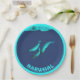 Three narwhals, Monodon monoceros, under the polar ice. Customisable text reading, "NARWHAL" also appears.