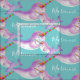 Original watercolor narwhal art personalised name fabric. Cute narwhal rainbow mono tusk repeat patterned fabric. The background colour can be changed if required currently aqua blue-green. Personalise with your own name. Other matching items are available. Original watercolor painting and pattern design by Sarah Trett for www.mylittleeden.com